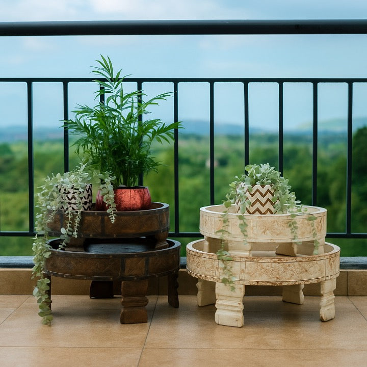 Inspired by an old Indian hand operated machine to grind grains, grinder tables are the perfect example of an old style presented in a new way!