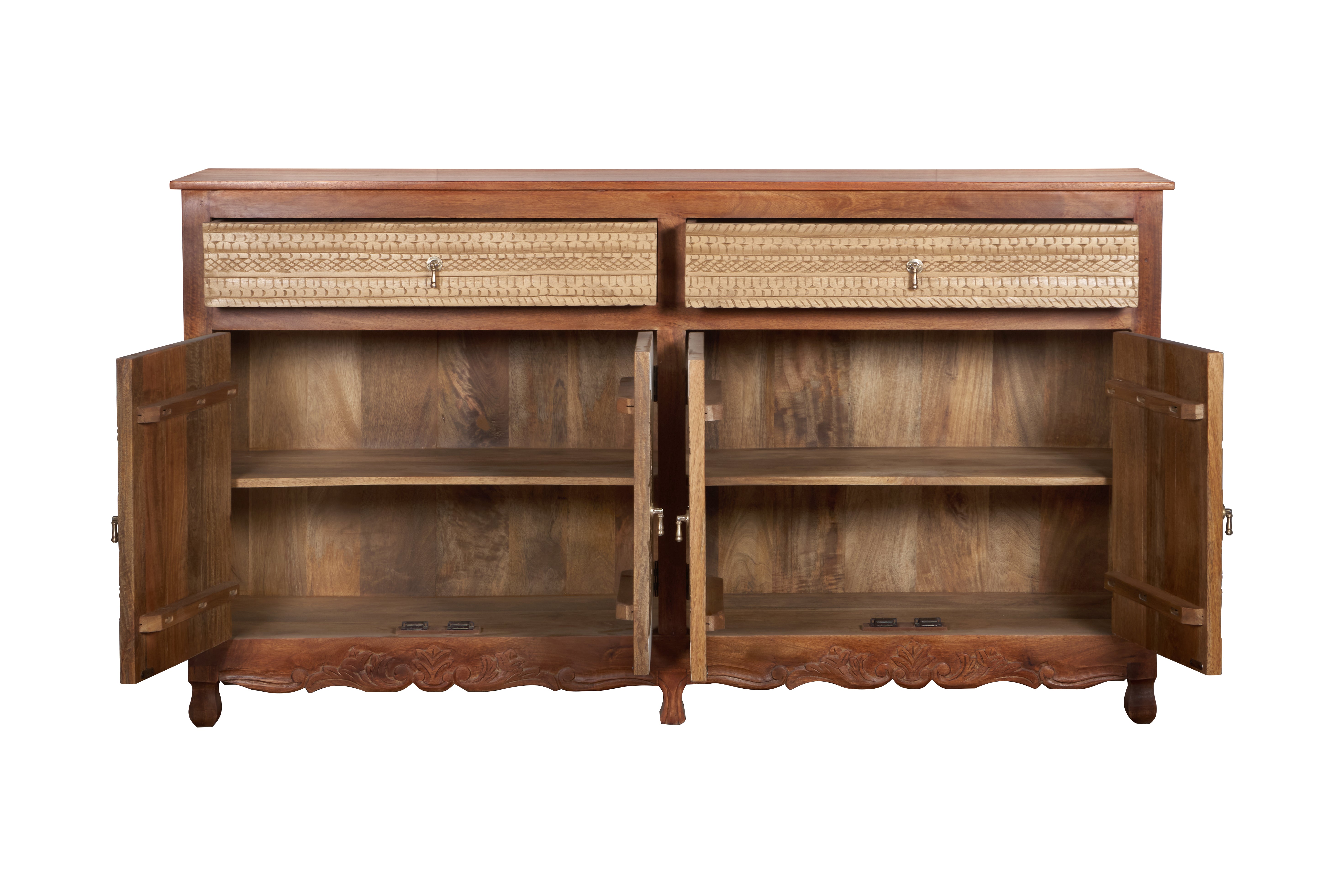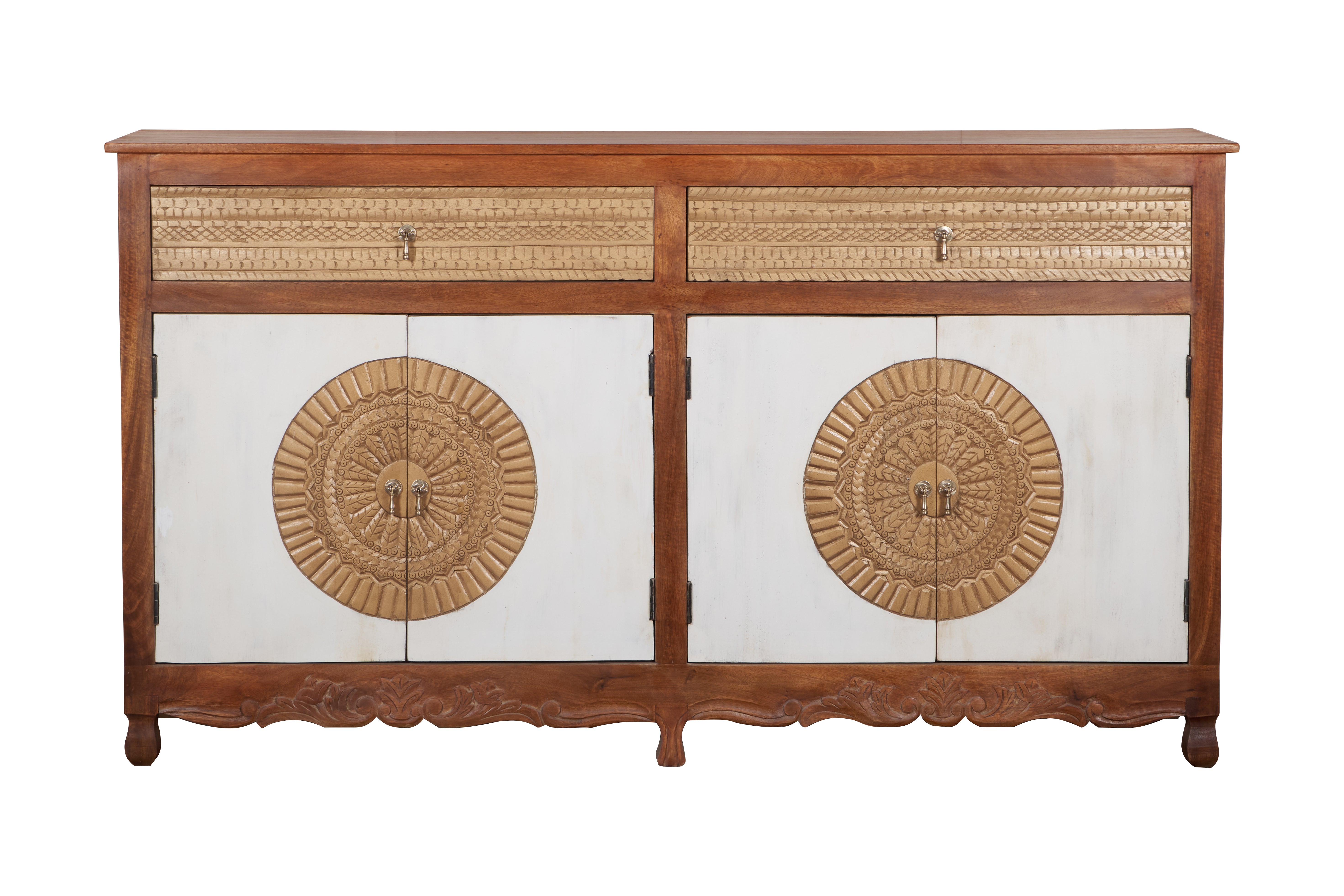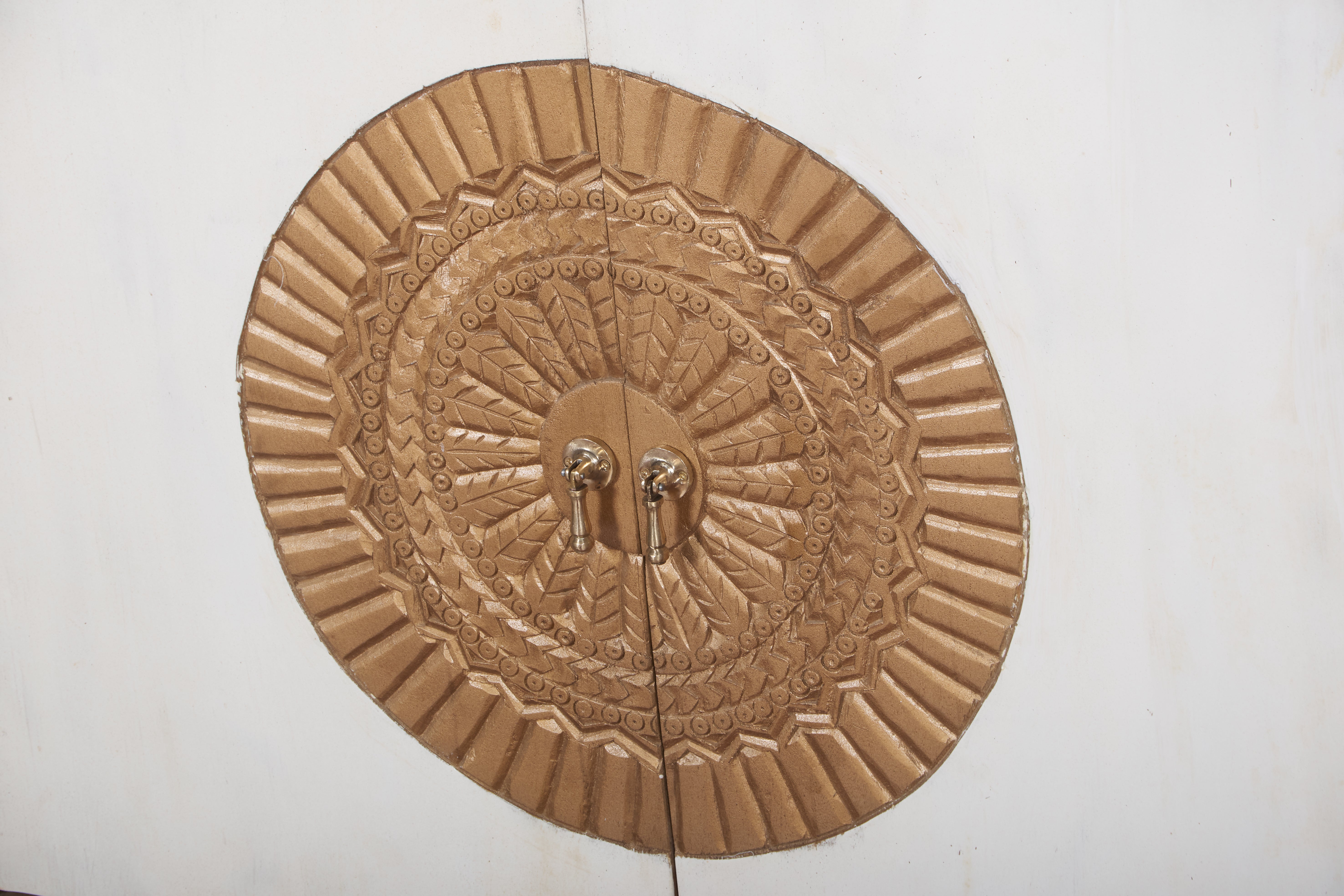 It comes with four hand carved doors in a lovely white washed and brown finish perfect to get along with any existing decor.