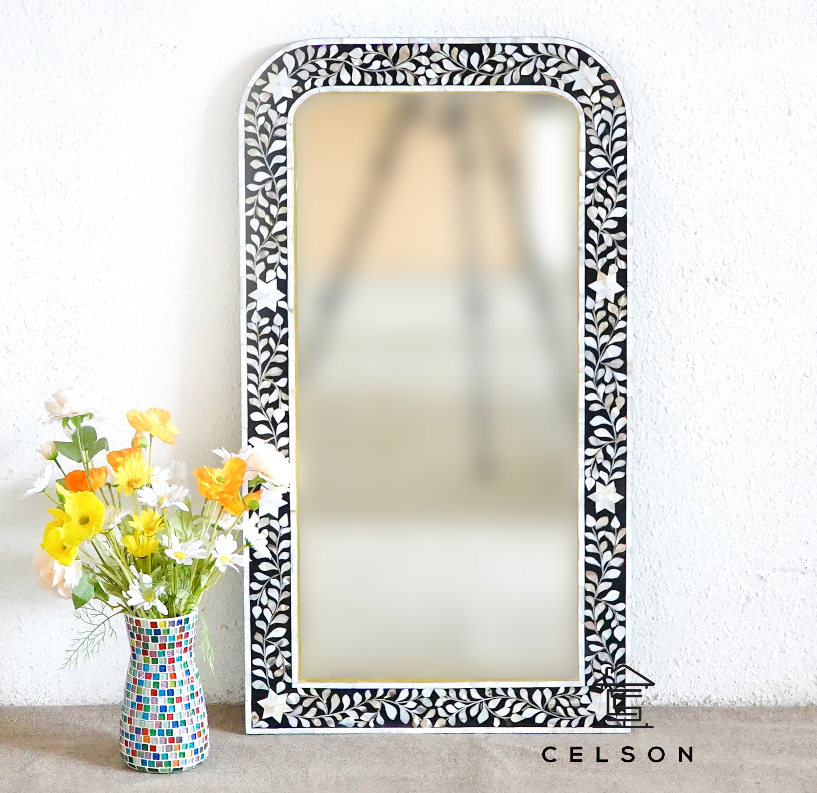 Elevate your styling game with this timeless MOP border mirror-the perfect companion for foyers, living rooms, and chic corners.