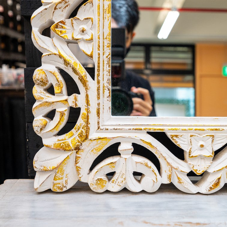And this stunner right here is made from mango wood with hand carved intricate detailing.
