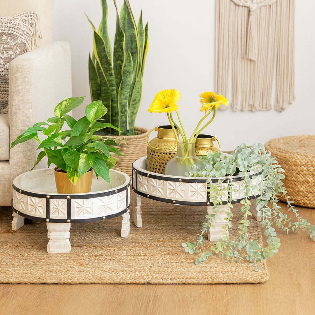 Inspired by an old Indian hand operated machine to grind grains, grinder tables are the perfect example of an old style presented in a new way!