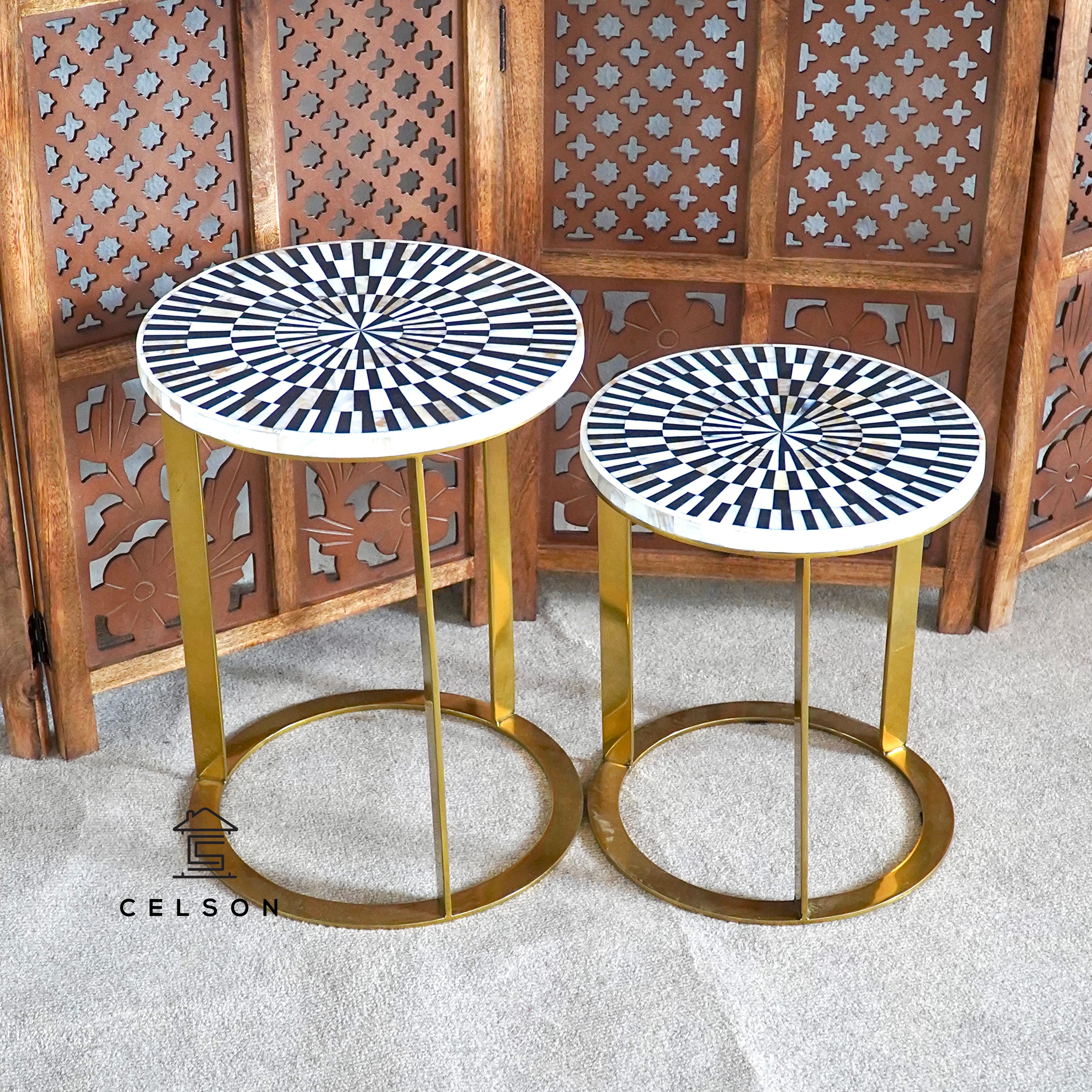 Shimmering Mother of Pearl tops and gold legs - a side table set that’s both chic and functional.