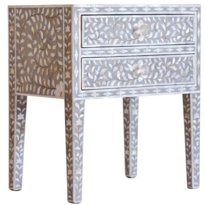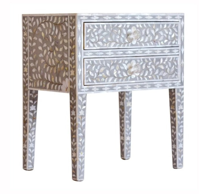 A mother of pearl bed side table can completely transform the look & feel of any bedroom with its gorgeous pattern & color.