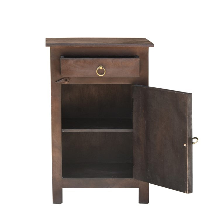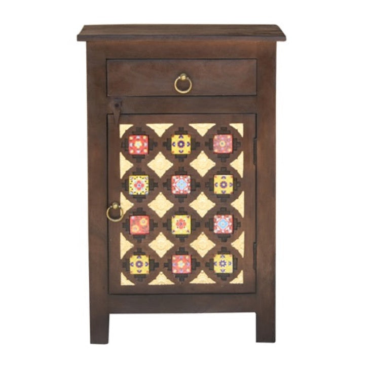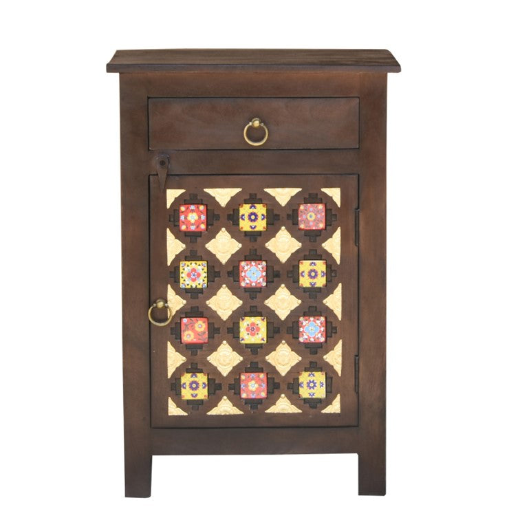 Add to the beauty of your home with this hand carved bedside table which is ideal for any bedroom decor given its brown finish.