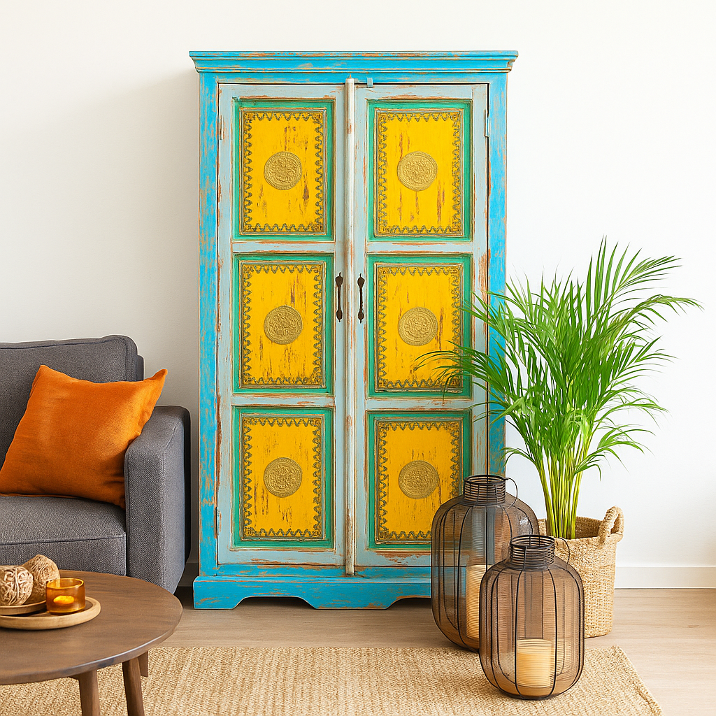 Our Riva Almirah would be the perfect addition to your dining area or bedroom! The four shelves provide plenty of practical storage for books and treasured items.