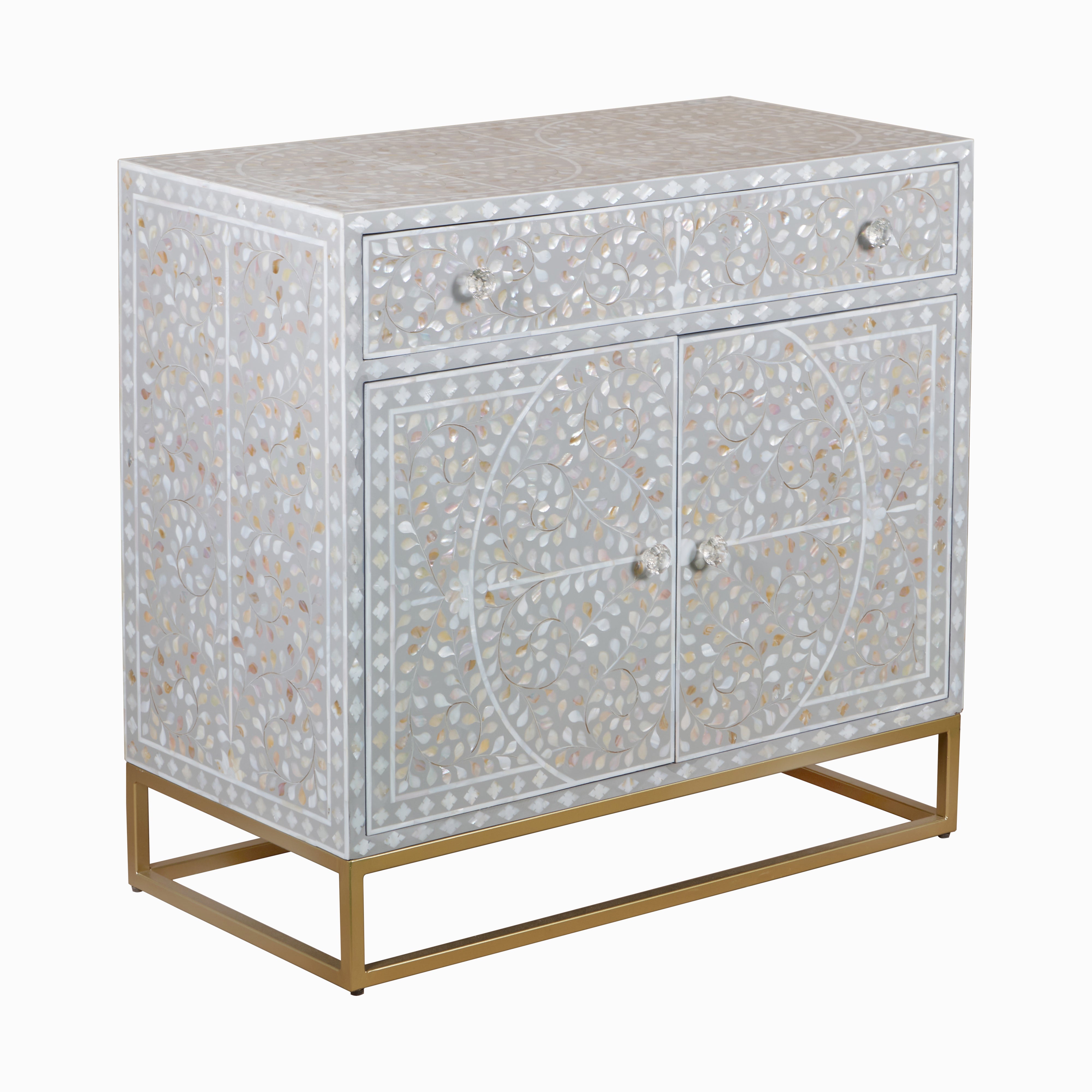 This elegant cabinet featuring a large drawer, two doors, and a beautiful floral design - is ideal for the bedroom, keeping clothes and accessories neatly tucked away, or in the living room for storing gadgets, books, and everyday essentials.