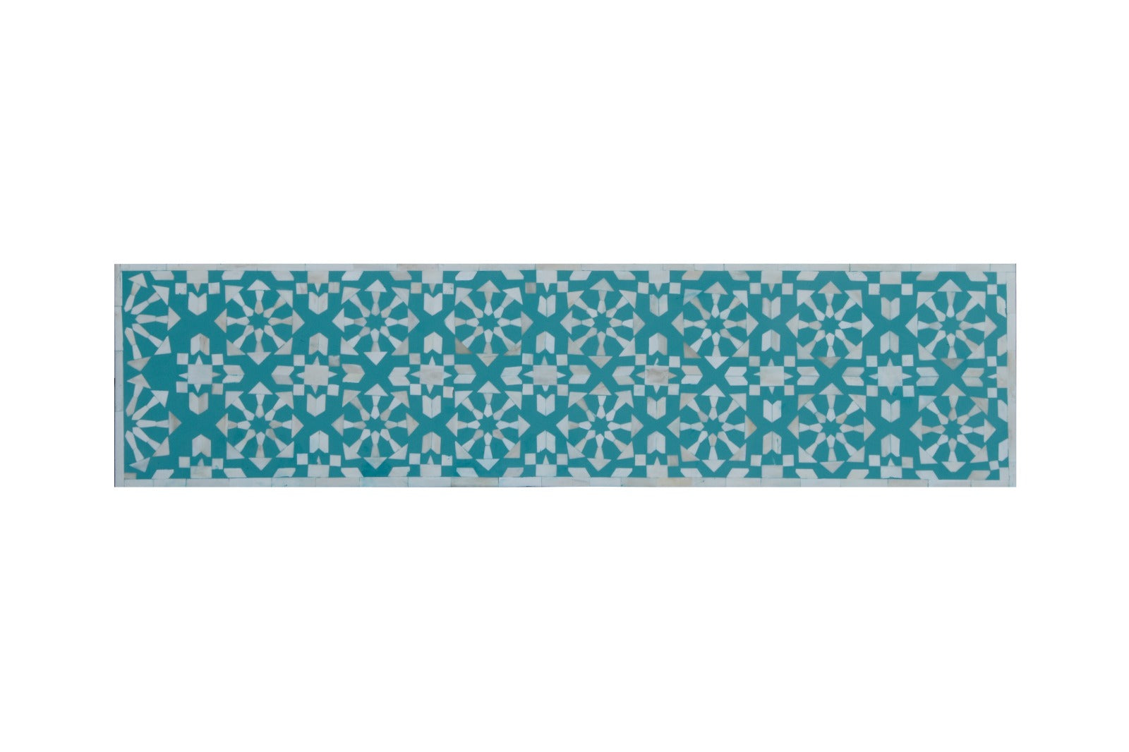 This stunning bone inlay console table comes with 3 drawers set in the cairo pattern in an aqua colour.