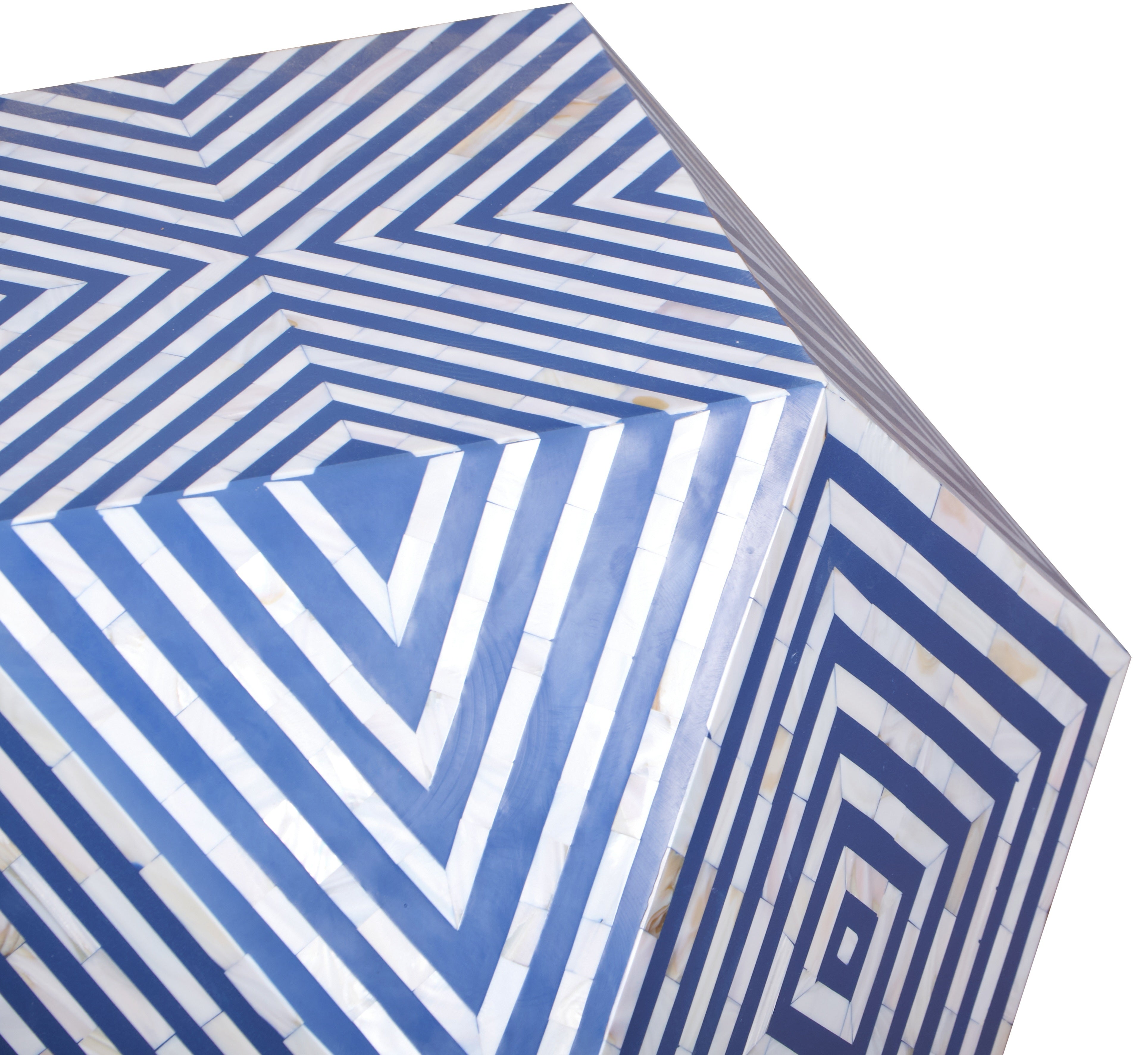 This Mother of Pearl Inlay stool transforms from a bedside table to a bar seat, coffee table, stool, and beyond.