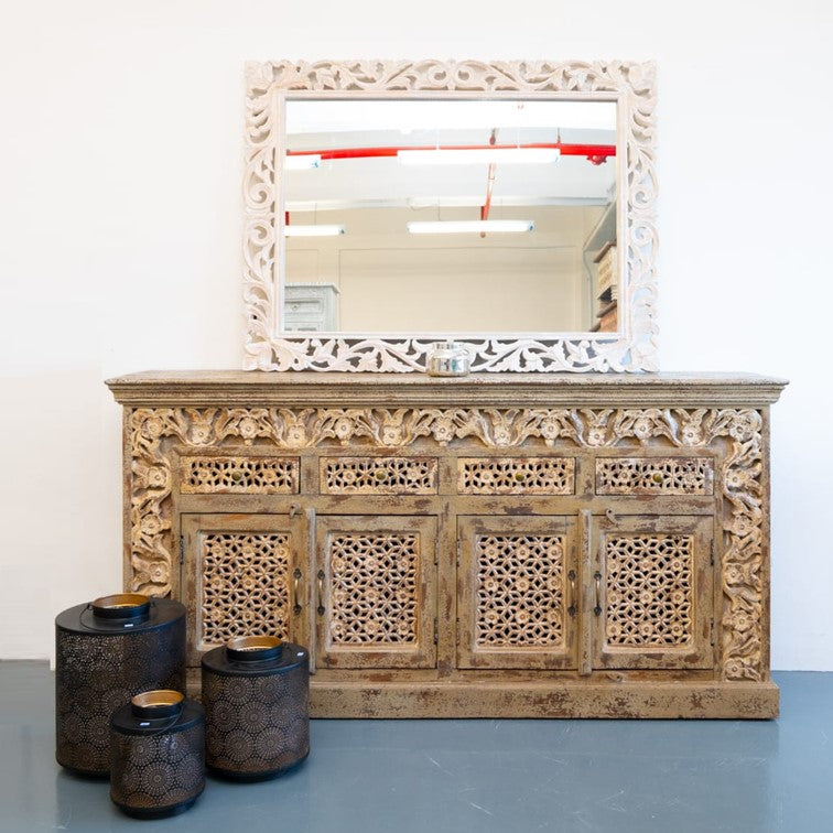 Carved and painted completely by hand, this gorgeous piece is profoundly versatile: It not only makes an ideal cabinet, but also provides statement-making storage in any room of your home.