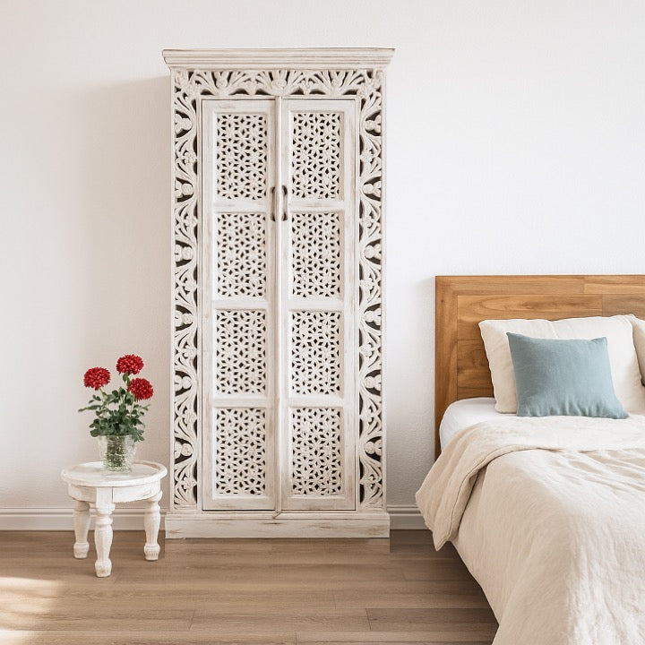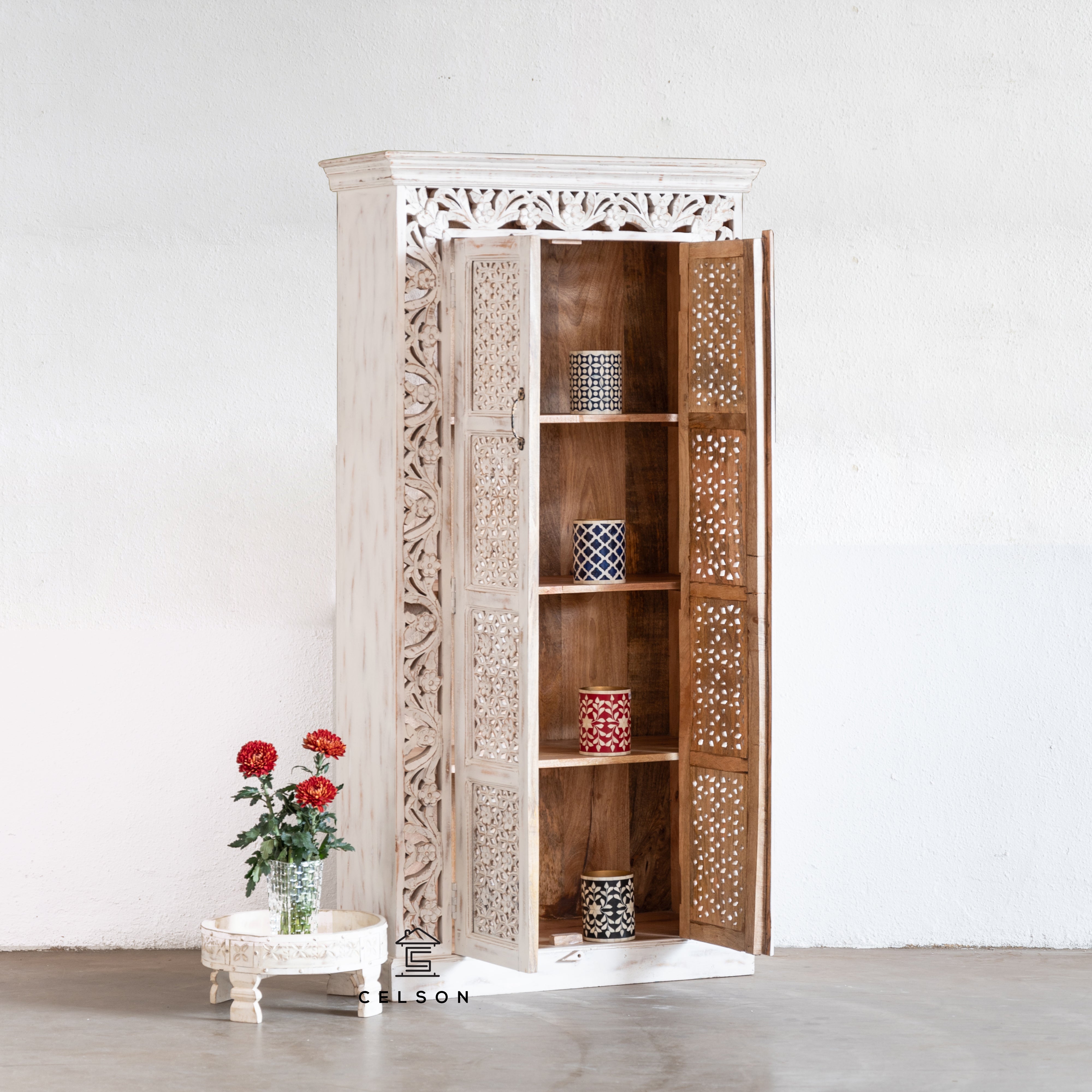Our hand-carved cabinet is tall, elegant, and made to organize in style.