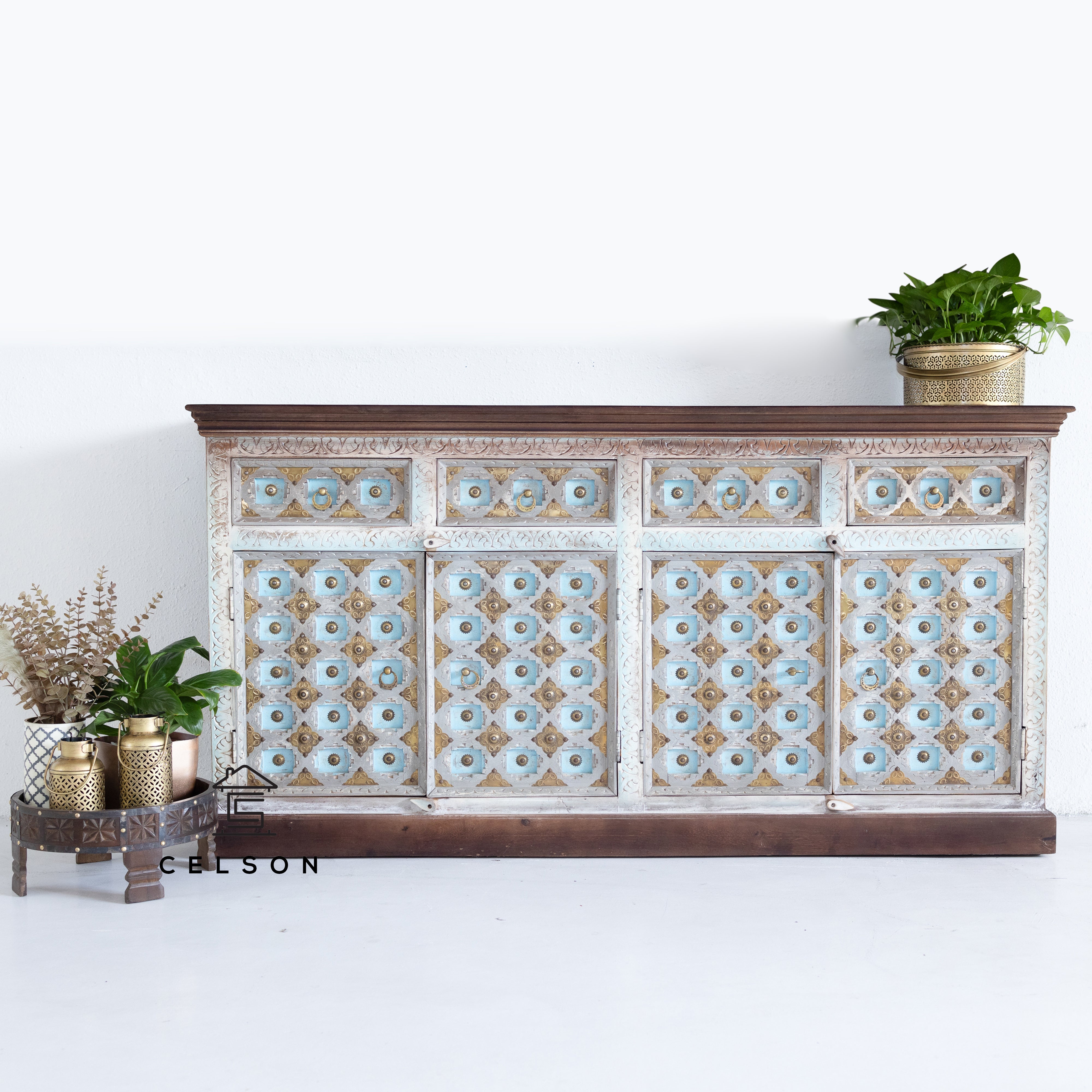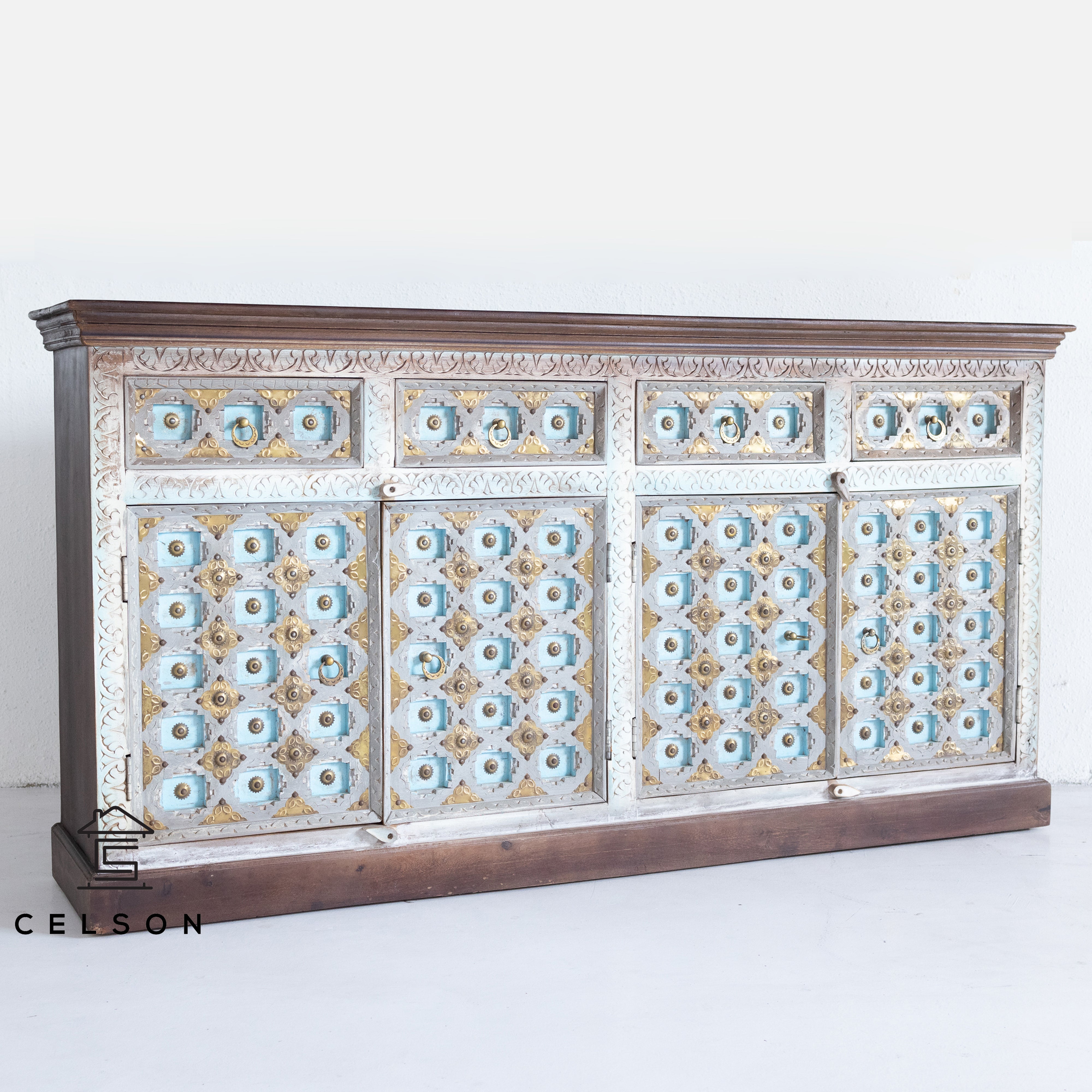 Carved and painted completely by hand, this gorgeous piece is profoundly versatile: It not only makes an ideal cabinet, but also provides statement-making storage in any room of your home.