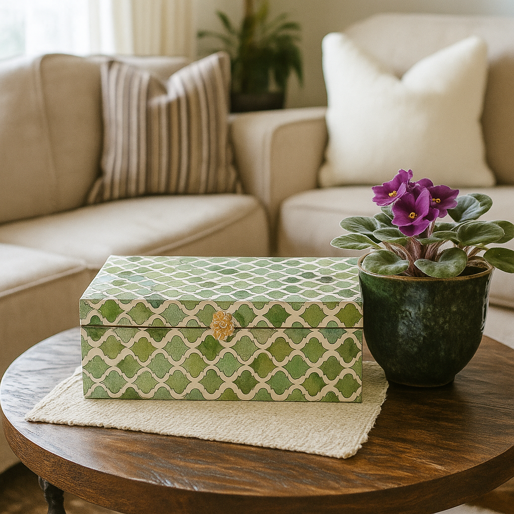 And these boxes will not only tidy up the space, they’ll also make it prettier with their gorgeous color & hand inlaid designs.
