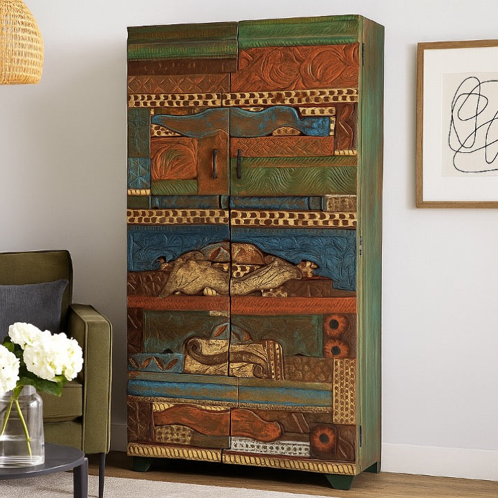 Our Wivan almirah, having sturdy solid wood construction with multi color finish works perfectly with the color scheme of any bedroom, living room, and hallway or entryway.
